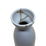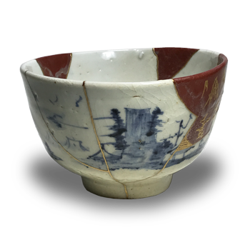 本来、金継ぎとは破損した陶磁器やガラス・漆器などを修復し復元する技術で、ひび割れた部分などの水漏れとニュウ(ヒビ)の進行を防ぎ、破片が無く欠けた部分を穴埋めしたり、さらに修復された部分を美術的な観点より金粉(消粉)を蒔くことを言います。