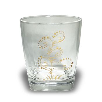 ガラスに金で唐草文様を蒔絵。