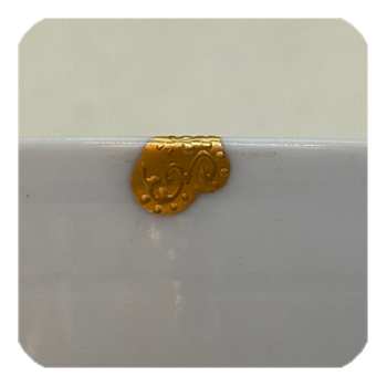 古唐津 鳥紋 四方 向付 創作繕い 2022.10.312026.01.28 古唐津 鳥紋 四方 向付 kem01画像一覧復元修復 金銀蒔絵古唐津絵唐津四方向付の陶片、四割ほど欠けていた部分を樹脂で復元修復しました。形状や厚みなど元の状態を復元し黒地にし金と銀とで蒔絵を施しています。
