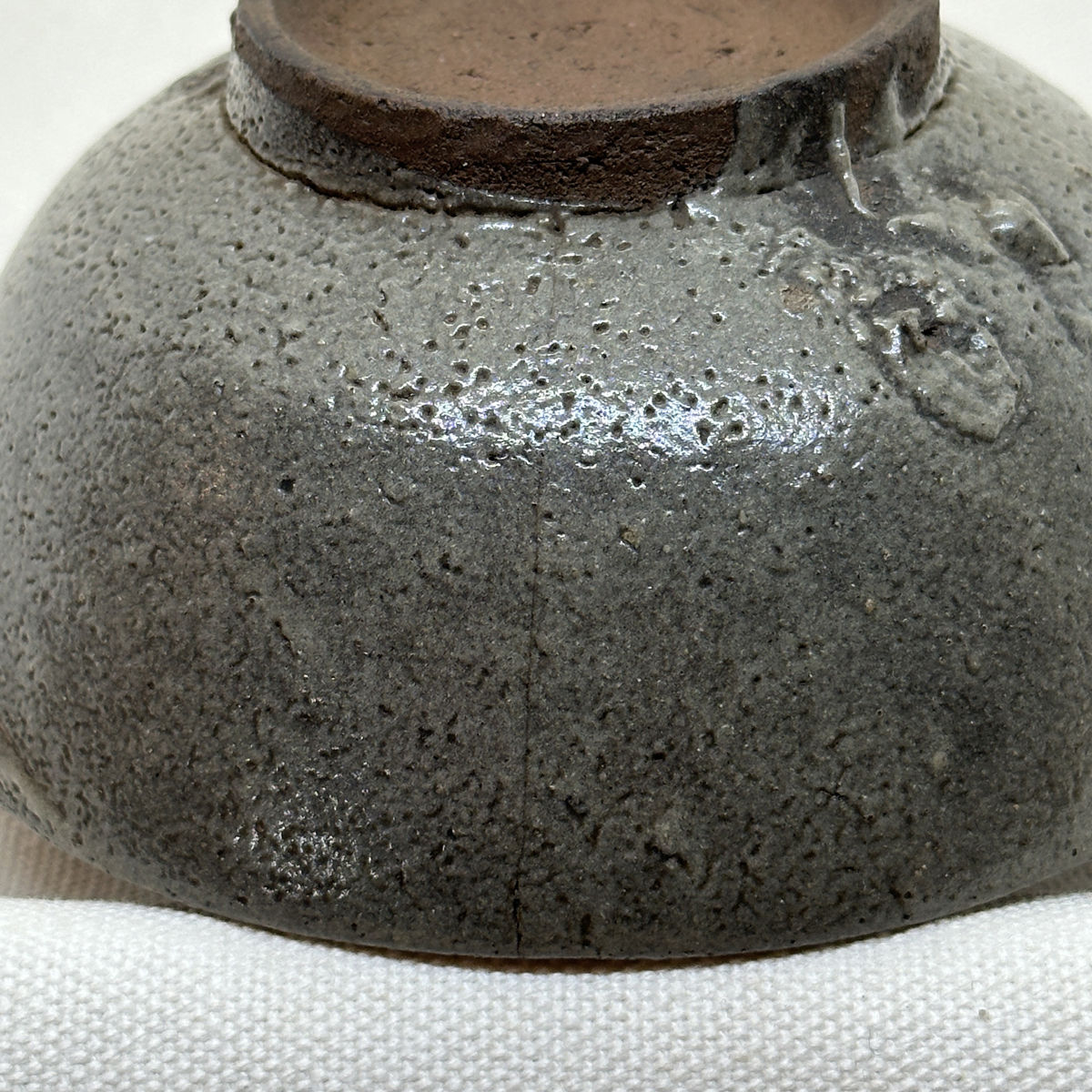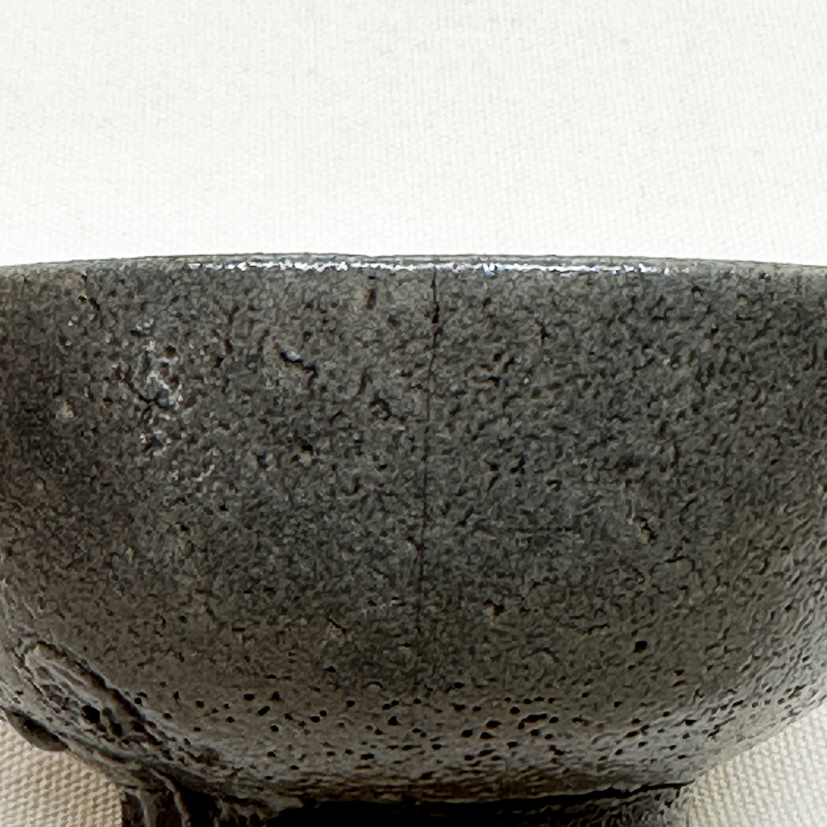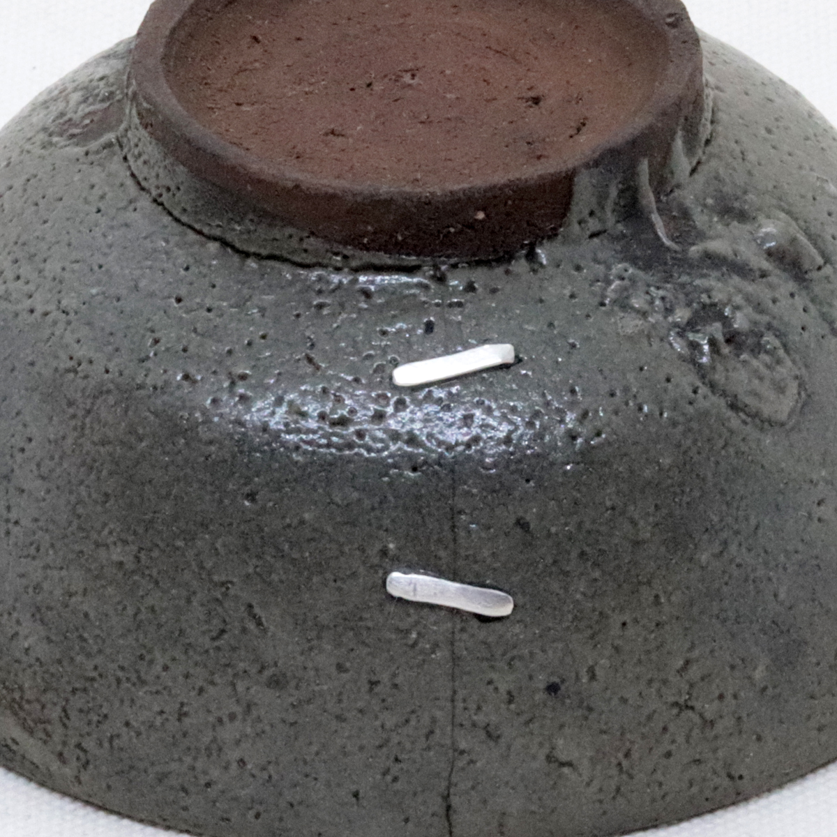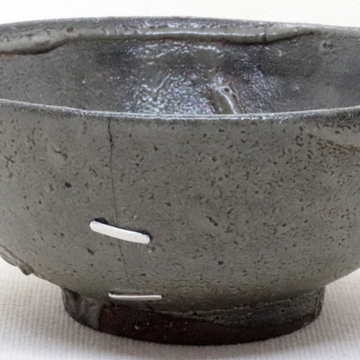 古唐津 鎹継ぎ修復 古作 2024.11.112026.01.18 Before Before古唐津の茶碗で二本のヒキが入っていたため鎹で止めてくれとのご依頼でした。 After 古唐津 鎹継ぎ修復 After銀の鎹で修復しました。ヒキの長さで鎹のカ所を決め、長い方に二個、短い方に一個、口縁部分は厚みが薄いため鎹を打つのは不可能でした。また、鎹は銀を所望され、銀は始めはキラキラしていますが時間がたつにつれくすんでいますのでなじんでくるかと思います。