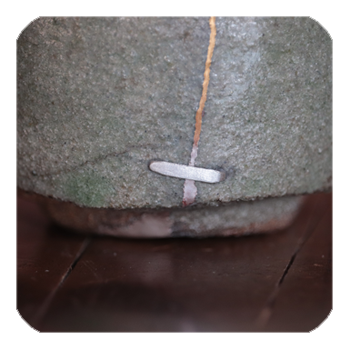 金継ぎと共に鎹で止めています。