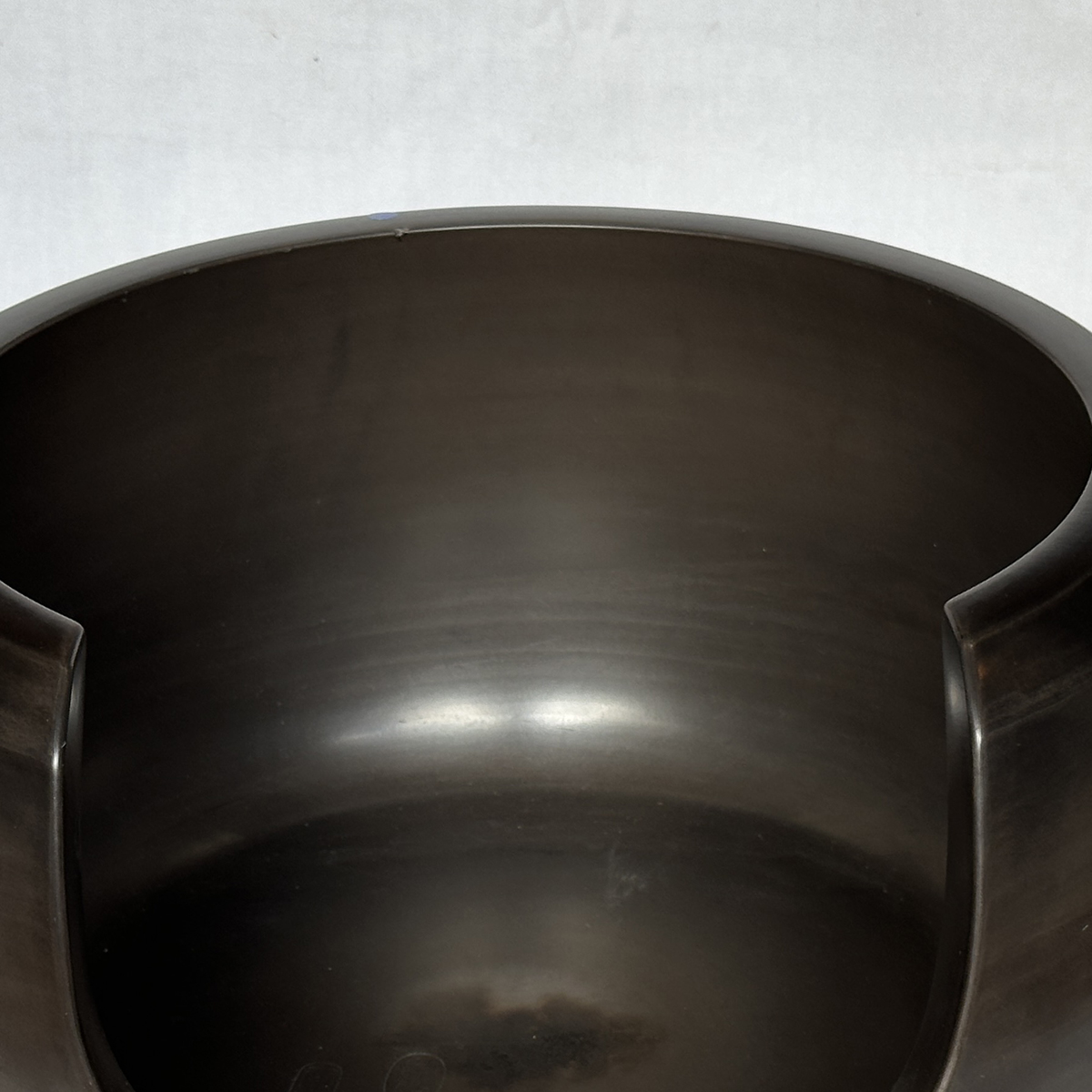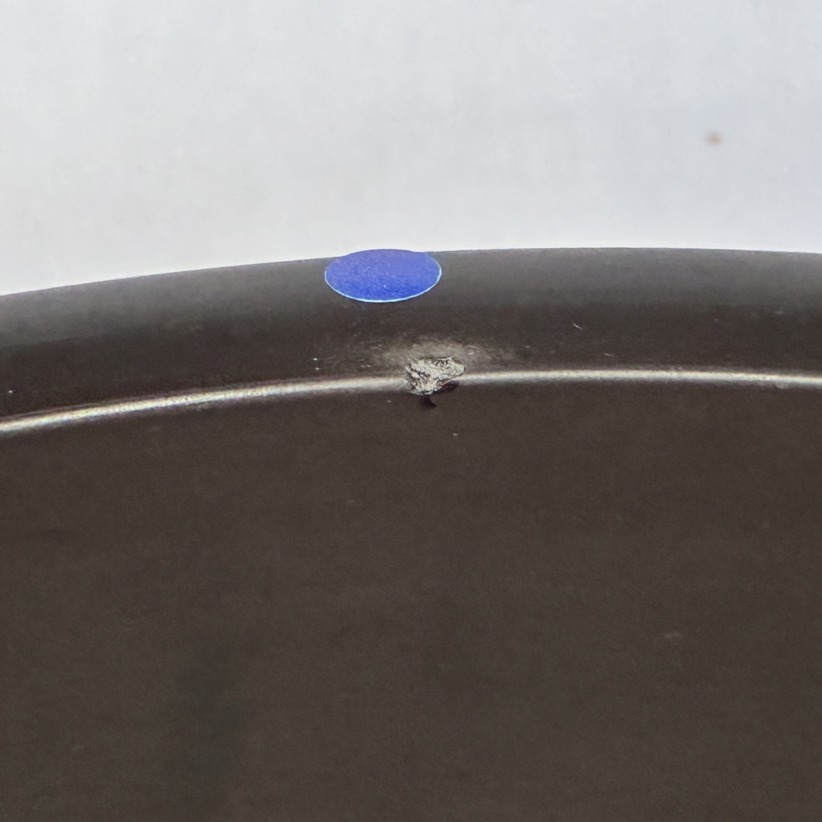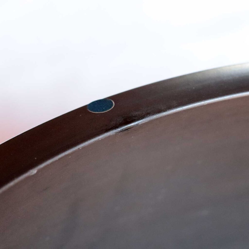 風炉20251007 金継依頼品 2025.10.072026.01.18 Before After Before陶器ではない土器に類する焼き物で釉薬が掛かって無く磨いて焼いた物。口縁部に一カ所メカケが有、共修復でご依頼。 After共修復であるため周辺の色具合で馴染ませるのに苦労しました。色具合は出るのですが光の反射具合で誤差が出たりしましたが、完璧ではないにしろ目立たなくなりました。