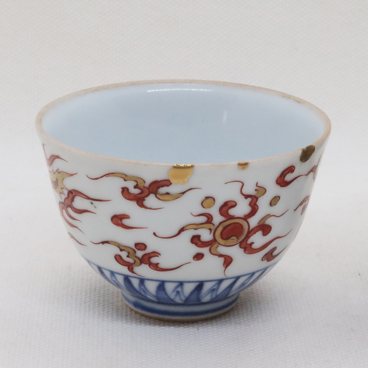 赤絵仙茶碗20240225 金継依頼品 2024.02.252026.01.20 Before Before Before赤絵の仙茶碗、口縁の一部がメカケしていて、飲み口なので修復したいとのご依頼。 After樹脂で埋めて、金でベタ蒔きしその上に模様を金で蒔絵しました。