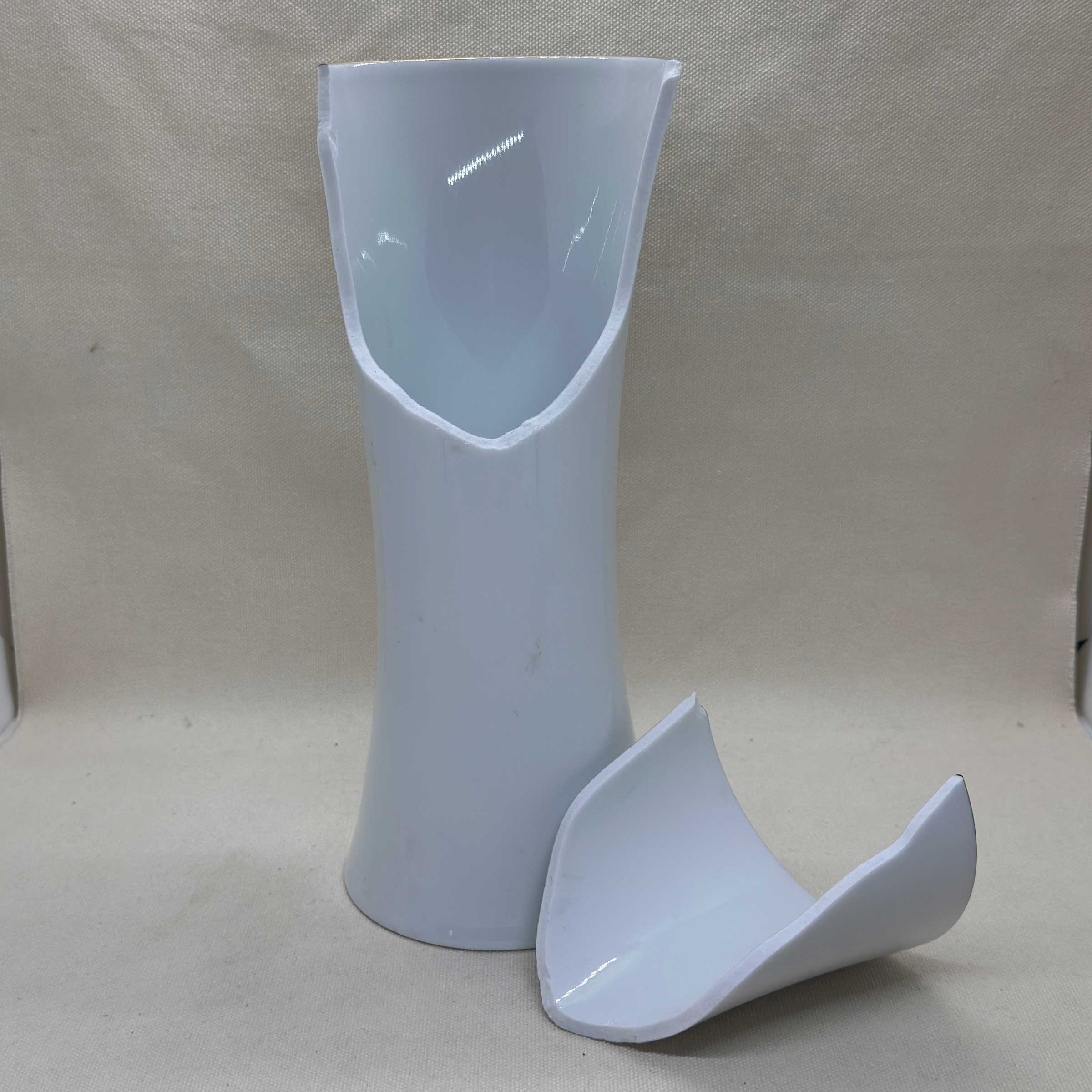 白磁の美しい筒型の花瓶ですが、倒れてしまい大きく割れてしまっていました。