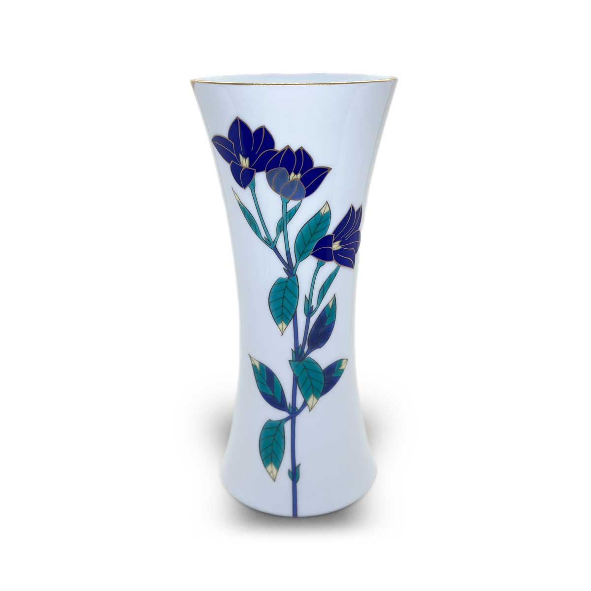 もともと描かれていた青い花の絵柄と、金のラインが響き合い、まるで最初からそうデザインされていたかのような一体感が生まれています。
