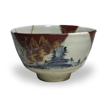 初期伊万里 染付 山水紋 碗形 茶碗 創作繕い 2022.10.282026.01.28 初期伊万里山水紋碗形茶碗 swc02寸法:長径 約12.5cm × 短径 約11.8cm 高さ 約7.7cm重さ:約250g修復:共継ぎ修復・金継・金銀蒔絵時を超え、数百年の歴史を紡いできた初期伊万里の山水紋茶碗。かつては欠けや破損によ...