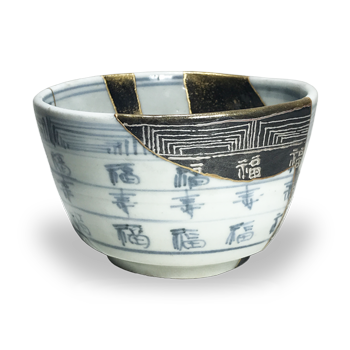 初期伊万里 染付 福寿字紋 碗形 茶碗 創作繕い 2022.10.302026.01.28 初期伊万里福寿字紋碗形茶碗 swc03寸法:長径約11.6cm×短径約11.6cm 高さ約7.5cm重さ:約290g修復:共継ぎ修復 金継 銀蒔絵初期伊万里の碗形茶碗に染付で「福寿」の字紋が描かれた一碗。かつて高台内にまで大きな割れを抱え...