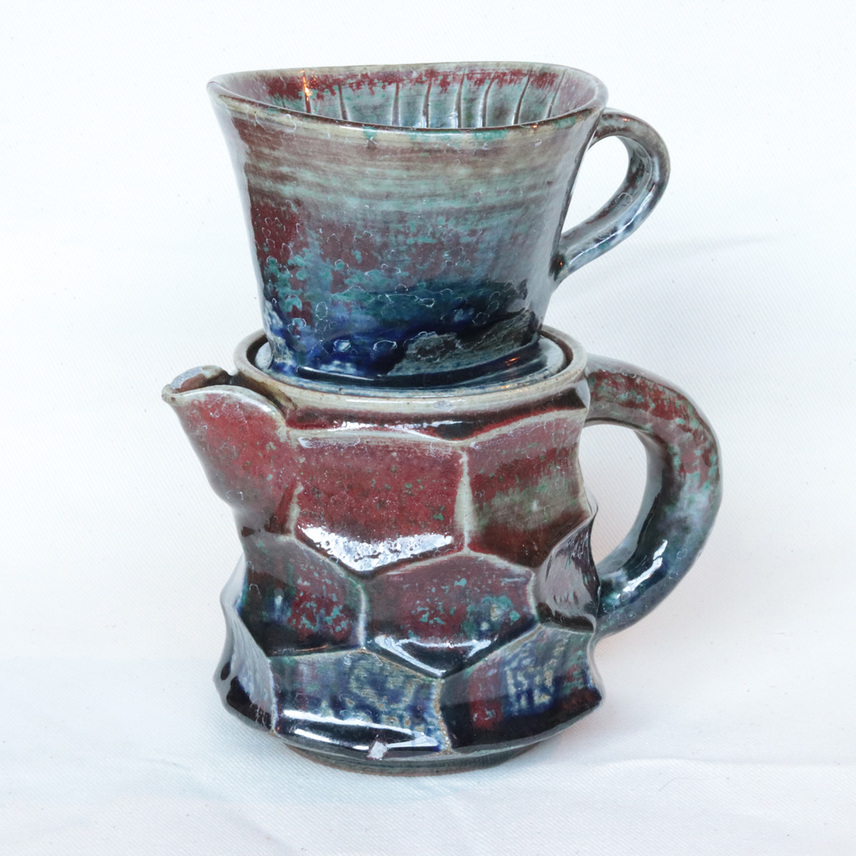 コーヒーポットセット20231111 金継依頼品 2023.11.112026.01.17 Before After Before珈琲を入れるドリッパーとポットのセットで複数のメカケがあり金継ぎの依頼でした。 After目で確認できる所は樹脂で埋め金の蒔絵を施しました。