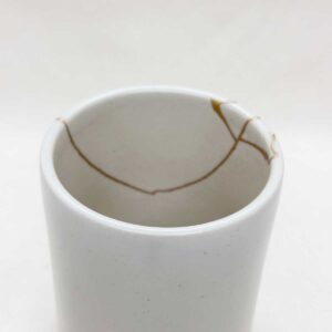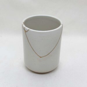 湯呑み金継ぎ修復20260129 金継ぎ 2026.01.272026.01.28 Before After Before激しく割れてしまった大きめの湯呑み。「三つの破片さえあれば、きっと元に戻るはず」というお客様の願いを込めて、金継ぎをとの依頼でした。 Afterあえて残ったわずかな隙間を埋めるように引かれた金線は、まるで意図したデザインのような豪快な美しさに。真っ白な陶肌に金の筋が鮮やかに映え、器のの内外に新しい「景色」が宿りました。