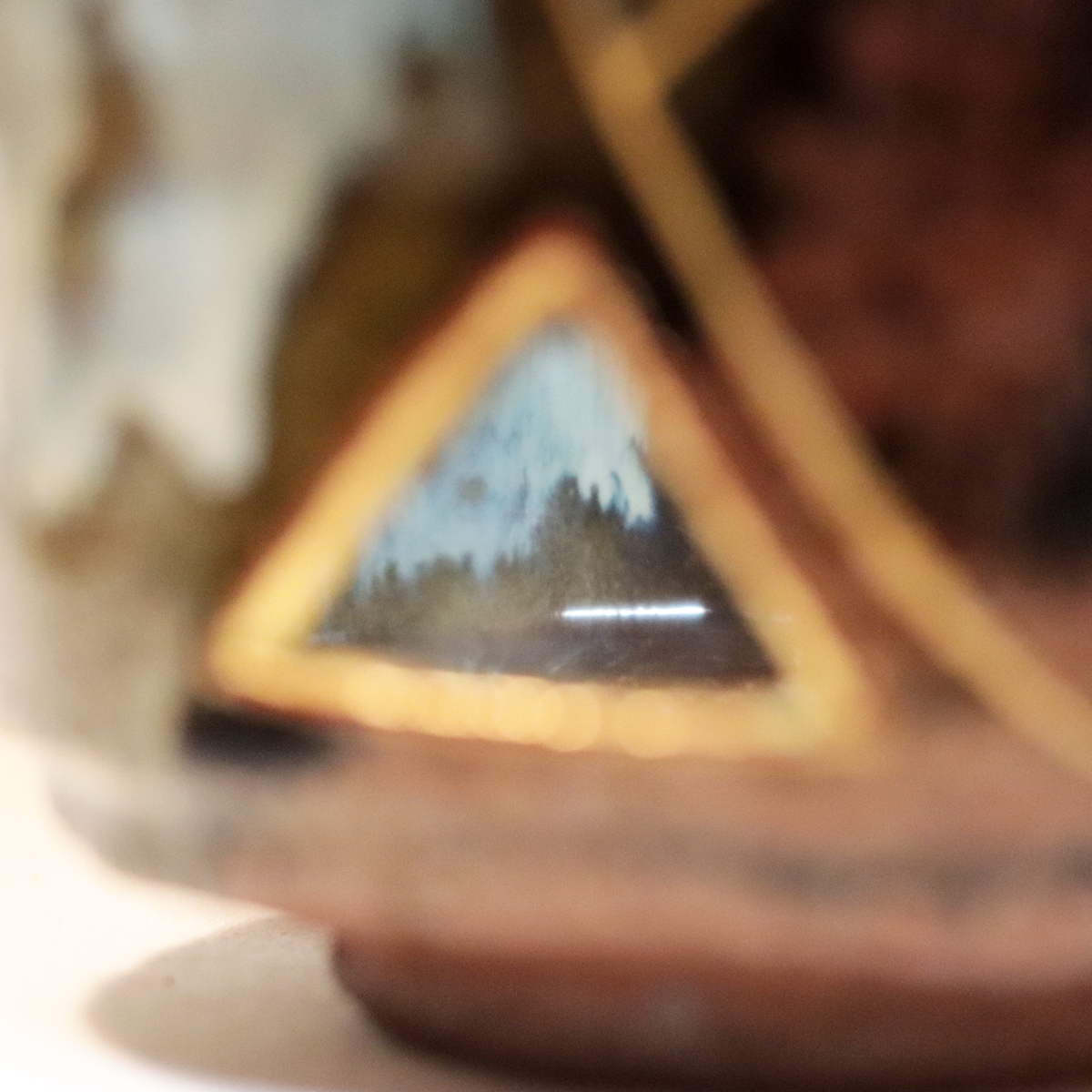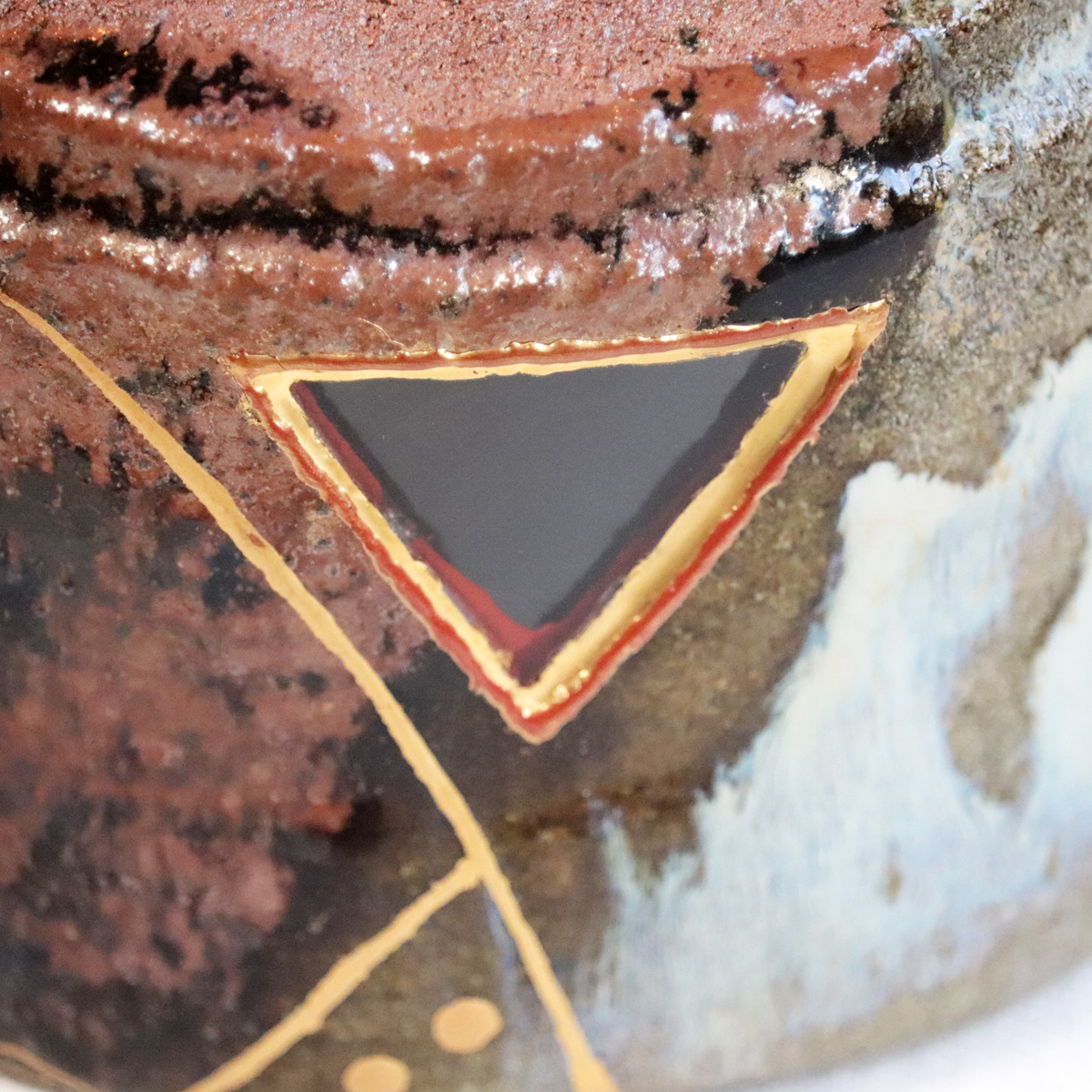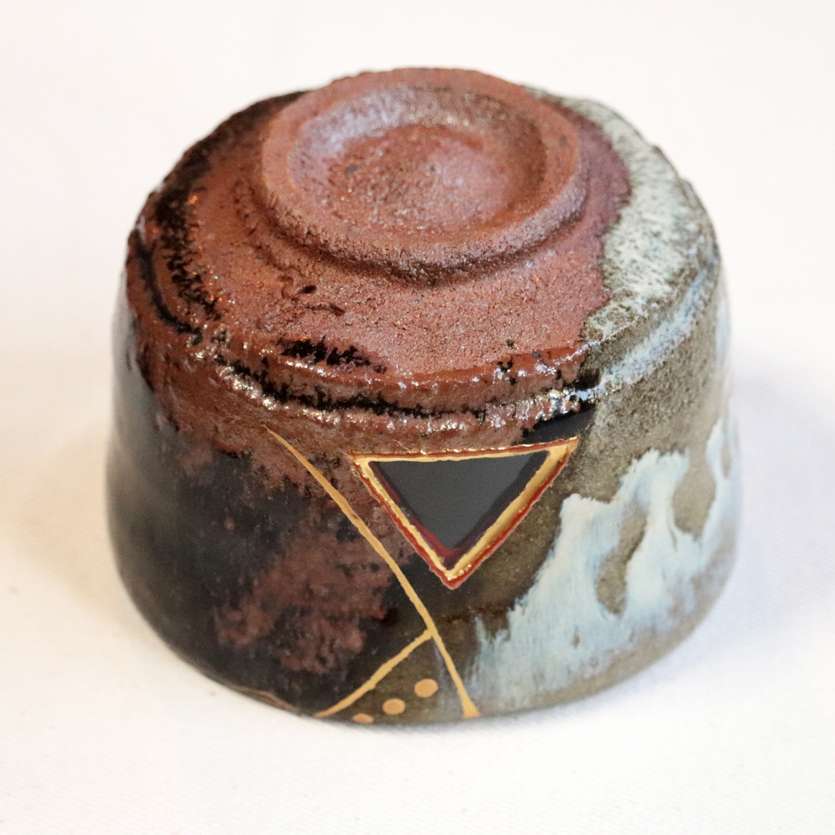 この作品の最大の特長は、器の一部に埋め込まれた三角形のガラスです。