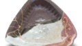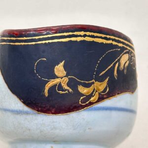 【Background】 Crafted using a ceramic fragment from an early Imari tea bowl made in the early Edo period. This piece revives a section that was severely deformed and damaged during firing in the kiln, using modern techniques and sensibilities. The lost half was boldly restored with resin and joined using the traditional “kintsugi” technique.