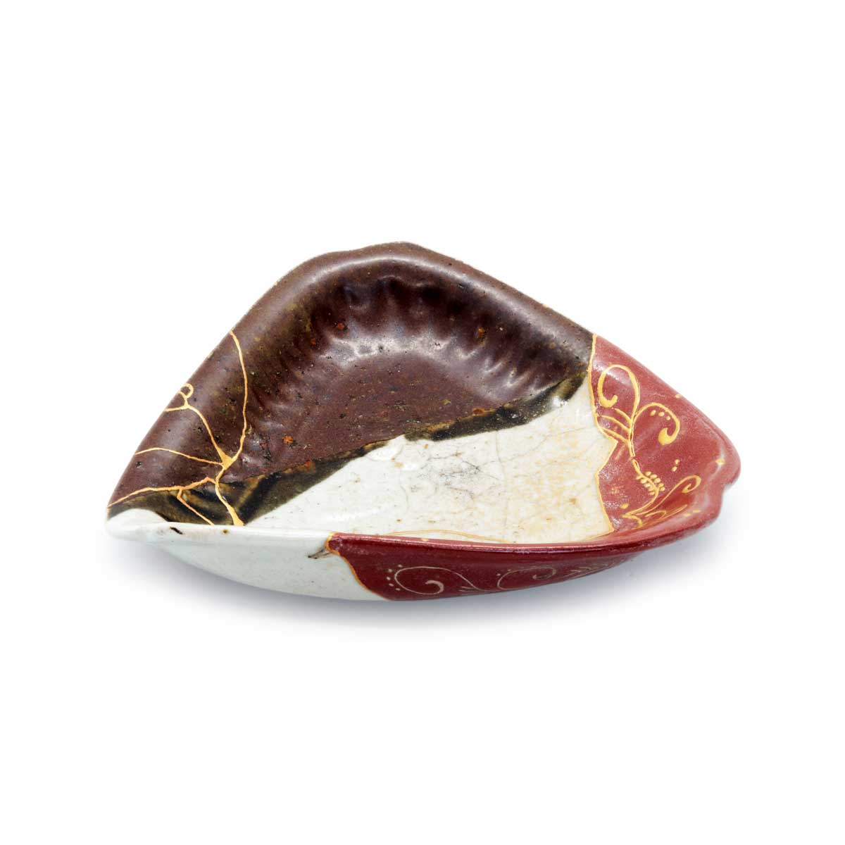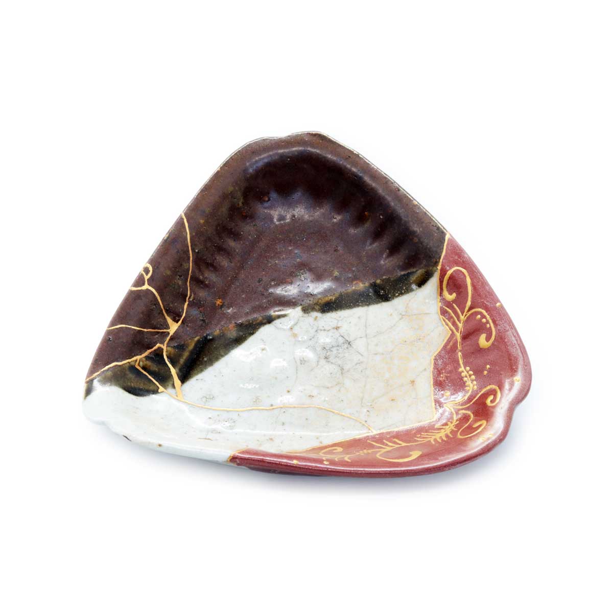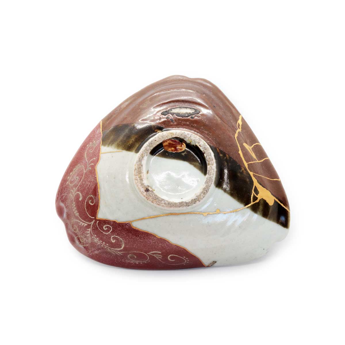 The Aesthetic of the Triangular Form: Restoring the missing corner has clearly revealed the inherent charm of this vessel’s triangular shape. Its softly rounded triangular form feels comfortable in the hand and adds rhythm to the dining table.