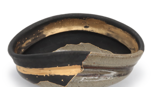 Old Karatsu-style painted Karatsu bowl-shaped tea bowlDimensions: Length approx. 11.9cm × Width approx. 10.5cm Height ap...