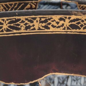 本作品は、陶片の状態から丁寧に呼び戻し、欠損部分を漆と金蒔絵によって大胆かつ繊細に復旧・修復いたしました。