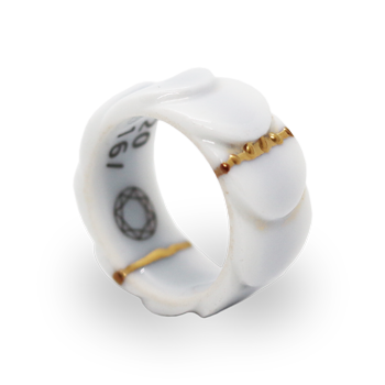 依頼品 白磁指輪依頼品 陶磁器で出来た指輪の金継ぎ依頼品です。接着部分が小さいので太めの金継ぎにしています。金筋がアクセントになって面白くなっています。継ぎ目も工夫を凝らし外れにくくしてあります。 2021.12.04 依頼品